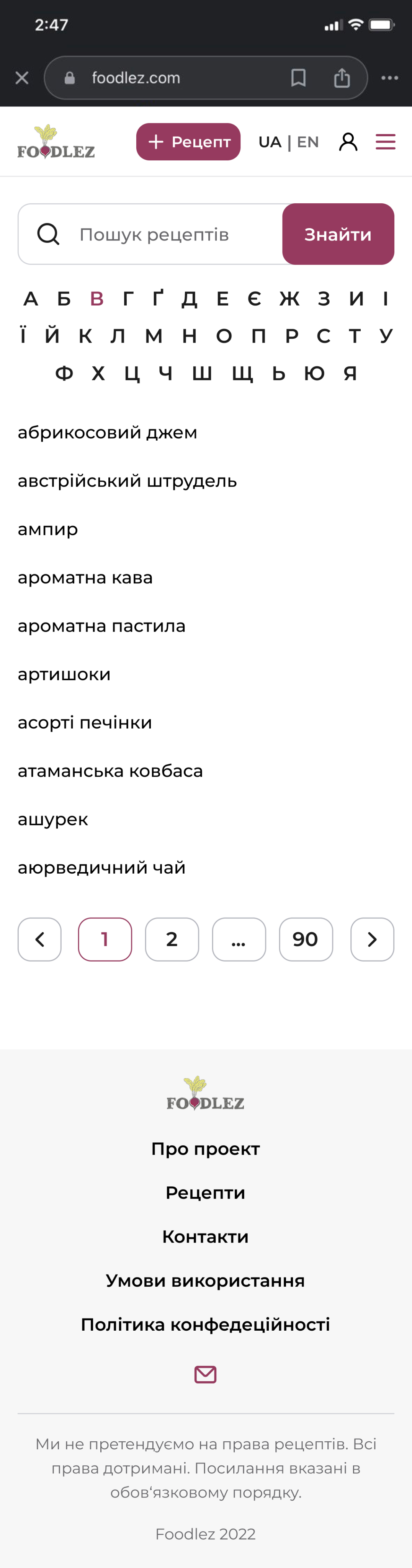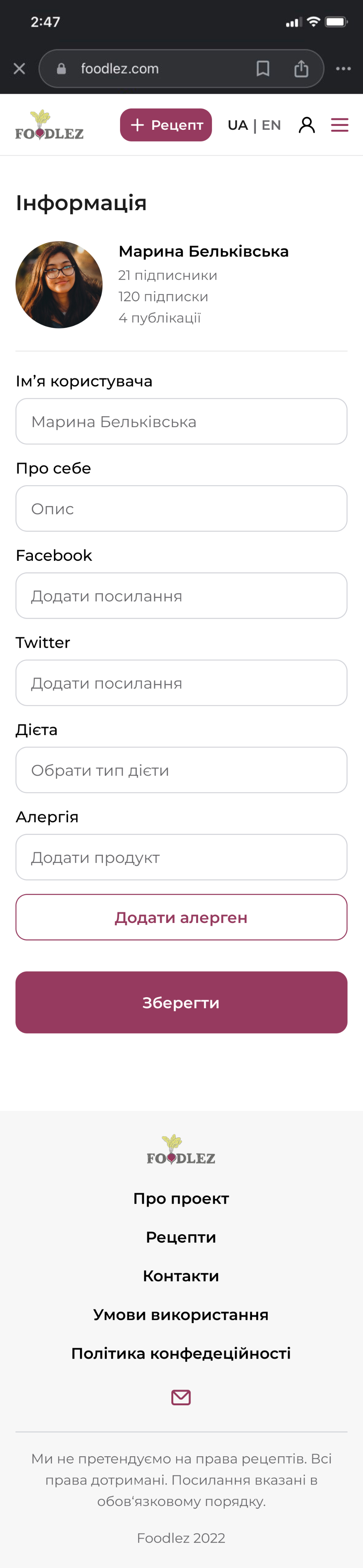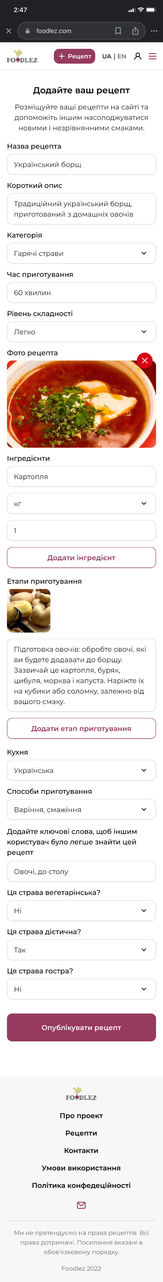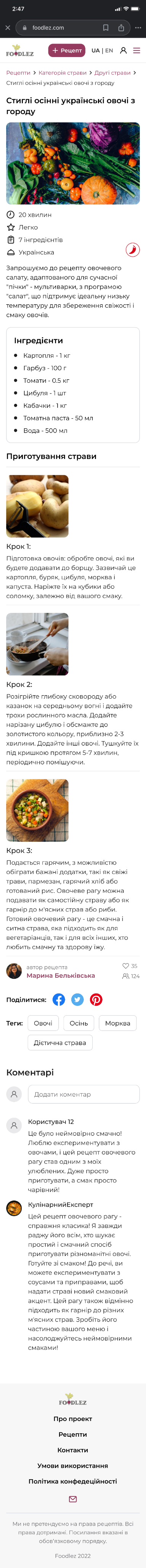 Culinary web-service